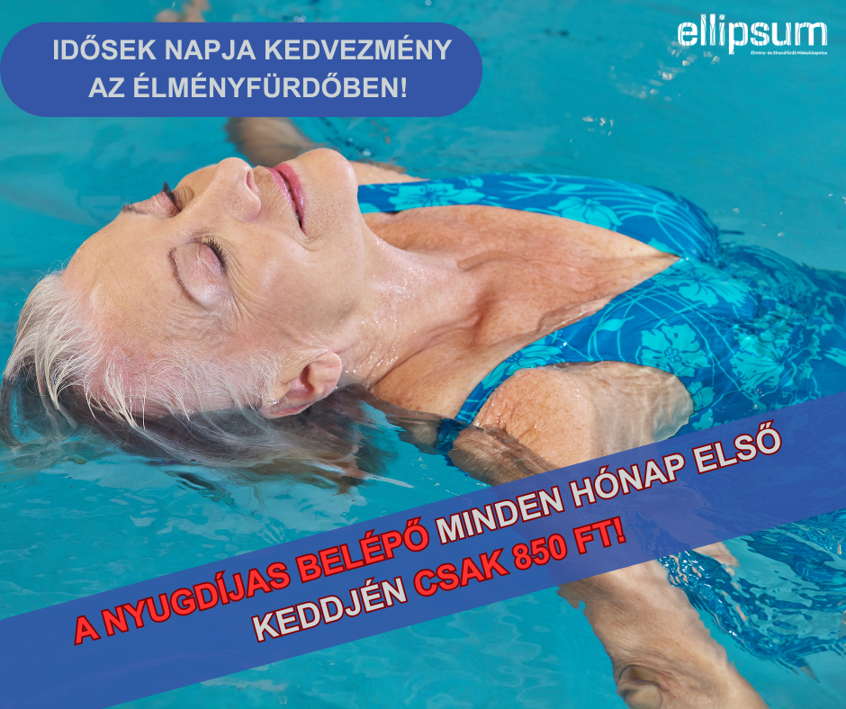 Várjuk szeretettel minden nyugdíjas vendégünket egy kellemes, barátságos környezetben eltöltött fürdőzésre az Ellipsumban.
