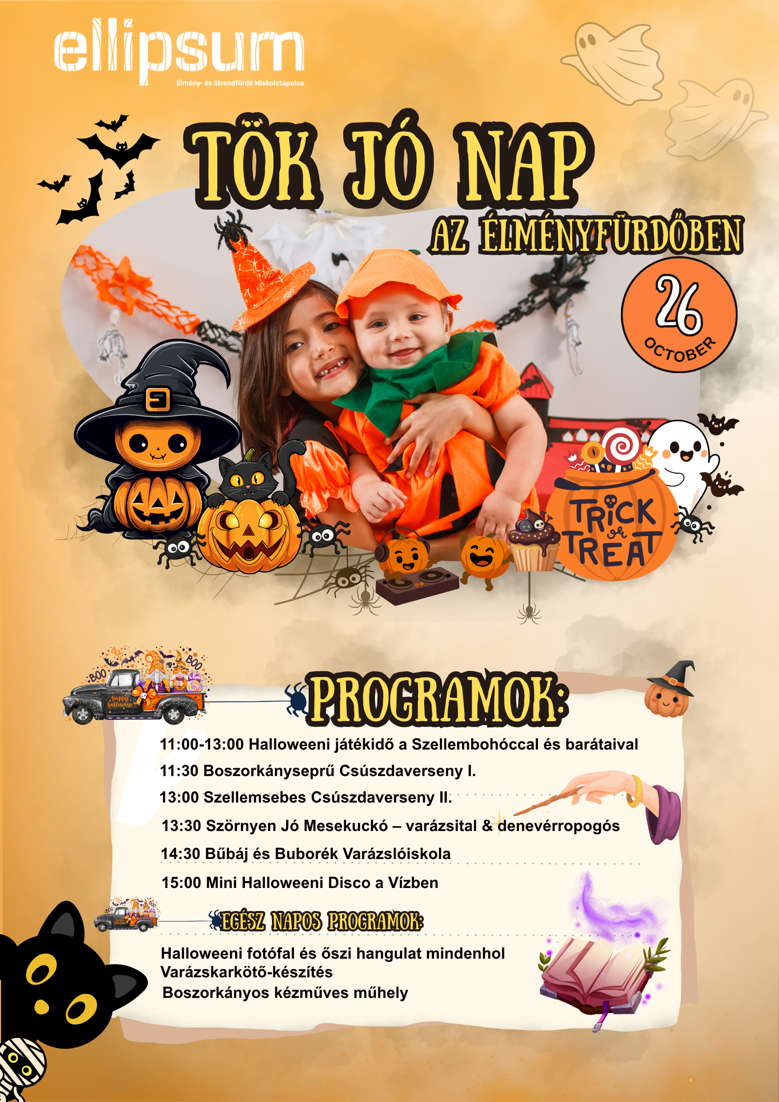 Október 26-án az Ellipsum Élményfürdőben minden az őszi varázslatról, a halloweeni hangulatról és a közös élményekről szól.